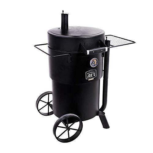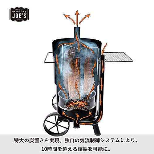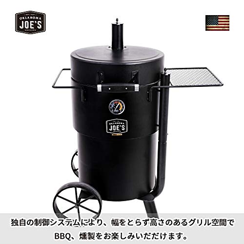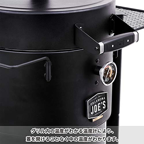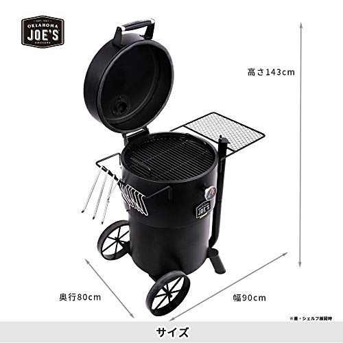 10時間以上スモークし続けられるほど耐久性に優れたドラム式のコンロです。温度計や食材をかけられるフックも付いているので、大きい塊肉を吊るして本格スモークが家庭で作れます。日本の家庭で使うにはやや大きめのコンロですが脚に車輪がついているので持ち運びは可能です。