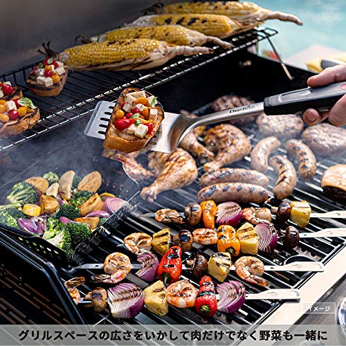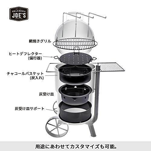 灰や肉の油の受け皿は容易に取り外しができるので掃除や後片付けも簡単にできますし、2つの通風孔を使って温度調節も簡単にできます。網目が大きめなので細かい食材を使うのではなく、インパクト大のアメリカの肉料理を体験してみてください。