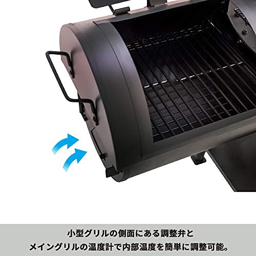 これは2つのコンロがくっついているのが特徴で、小さいボックスで燃やした煙をメインのボックスに流すので、大きいほうの蓋を開けずに温度の微調整ができます。