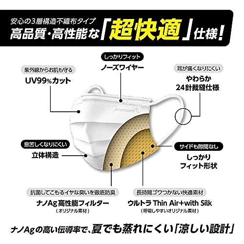 衛生面上、使い捨てマスクが使いたいという方も多いでしょう。そんな方には、こちらの「ウルトラThin Air+with Silk」と呼ばれるオリジナル素材を利用した使い捨てマスクがおすすめ。