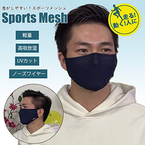 UVカット効果をスポーツマスクに求める人には、こちらのマスクがおすすめです。呼吸がしやすいよう、メッシュ素材を利用しています。鼻部分にはノーズワイヤーを施しているので、立体構造になるのが特徴的。