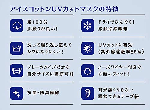 また、マスクと接触している肌はひんやりと感じる繊維が使われているため、夏に最適です。耳が痛くならないように調節できるテープ紐が採用されているなど、使用する人のことを考えて作られたマスクとなります。