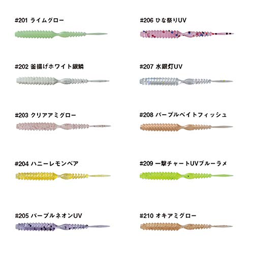 大型のアジを目指して特別小さなフックを使わない場合は、ちょっと大きめの2インチワームがおすすめ!サビキの横で釣る場合は、匂い付きのものがあると釣果が安定するように感じています。カラーのおすすめは去年調子が良かった「パープルネオンUV」!シラスを表現できるもの、オキアミ等漂うベイトを演出できるもの、両方あると安心ですが、横の動きは後述するメタルジグに任せてしまってもOKです!