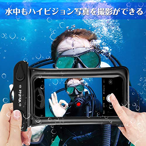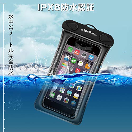 防水ケース スマホ用 防水ポーチ 携帯防水カバー 【IPX8】完全防水 気嚢付き/浮く ハイビジョン撮影 指紋認証/顔認証 高感度タッチスクリーン Face id IPhone/Samsung/Sony/Nexus/Android等6.5インチ以下全機種対応 海/お風呂/水中撮影 アウトドア適用 防塵/防雨/防雪 ネックストラップ/アームバンド付属 透明ブラック【品質保証】