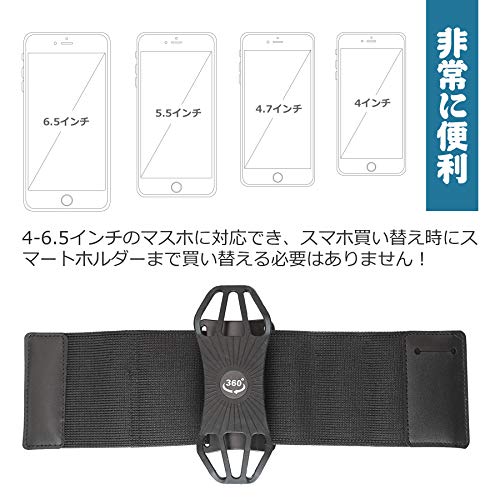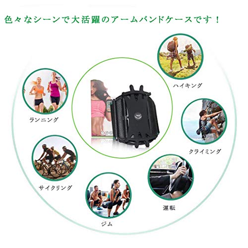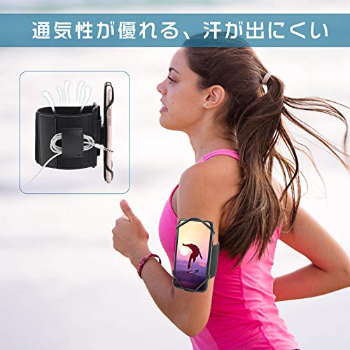J-KONKY ランニングアームバンド スポーツ スマホ アームバンド 360°回転式 スマホ腕ホルダー スマホ 腕バンド 通気 4-6.5インチのマスホに対応 軽量 小物収納 調節可 スポーツ アームバンドケース ジョギング スマートフォン用アームバンド (ブラック)
