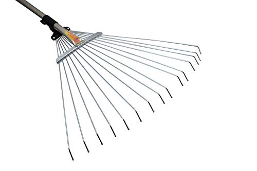 大きな熊手のようなレーキは地上部を掃除してできた草や小石などを一箇所に集めるときに使う道具です。小さい家庭菜園ならなくても大丈夫ですが、ある程度広いと集めるための道具もあったほうがやりやすいですよ。また土を耕すとかならず異物が出てくるのでそれらをまとめて集めるときにも便利です。