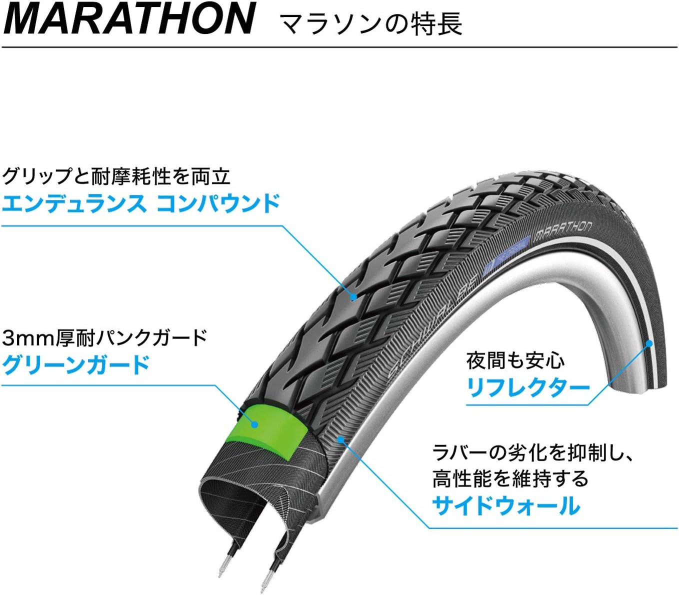 マラソン専用コンパウンドである「Enduranceコンパウンド」を採用していて、グリップ性・耐磨耗性に優れている特徴があり、長寿命なクロスバイクタイヤです。またクロスバイク走行時の安全性を高めてくれるリフレクターも付いているタイヤです。