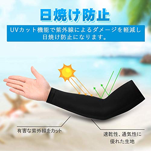 桜酔屋 アームカバー 腕カバー アームスリーブ UPF50 冷感 速乾 滑り止め スポーツ活動用 軽量 男女兼用 両腕/セット (黒い, M)