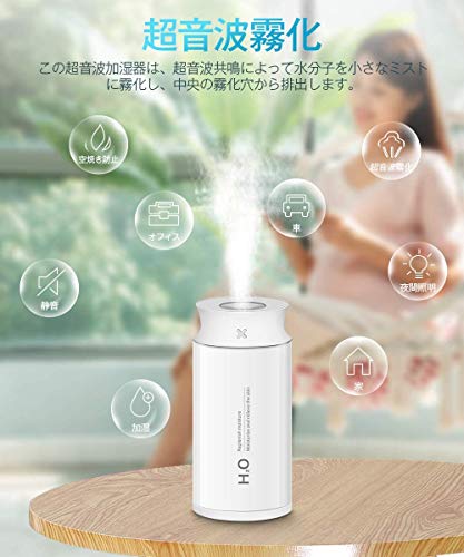 【令和最新版 & 次亜塩素酸水対応 充電式】 加湿器 卓上 超音波式 USB 大容量 350ml 卓上加湿器 除菌 7色LEDライト 静か 空気浄化機 持ち運び便利 オフィス 子供部屋 車載 家庭用 花粉対策に 乾燥防止 空焚き防止 (ホワイト)