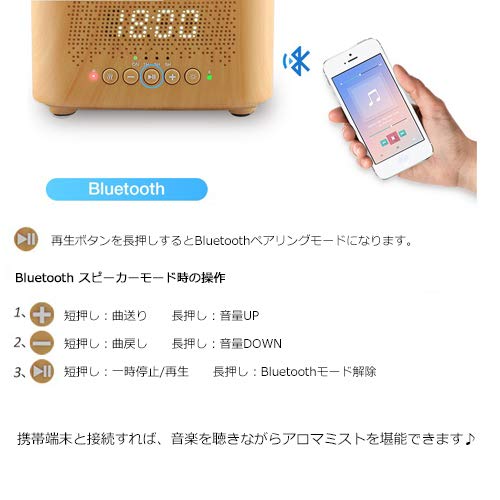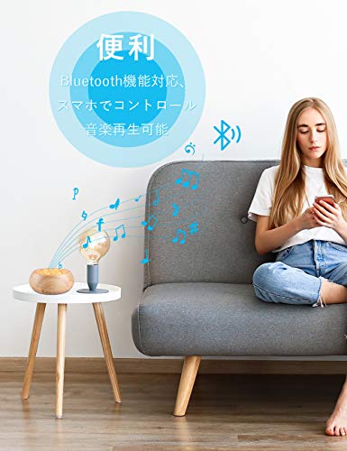 YOUNGDO アロマディフューザー アロマ加湿器 卓上加湿器 超音波式 V4.2 Bluetooth対応 音楽再生可能 400ML大容量 10時間連続加湿 ミスト出力調整 空気清浄機 14色変換LED搭載 乾燥対策 静音、省エネ 空焚き防止機能付き 木目調