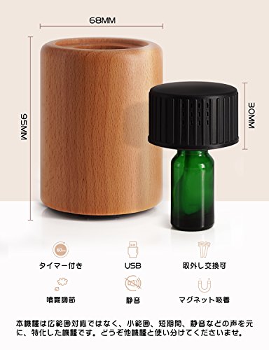 ENERG e's Nature 送風式アロマディフューザー 狭い範囲・睡眠専用 究極静音 卓上アロマ芳香器 車載 安眠 デスクワーク 瞑想 書斎読書 音楽鑑賞 机の上 枕元などに最適 タイマー/出力3段階調整可 交換綿棒2個 スポイト瓶1個付き 最大6畳対応 T11-EN066C