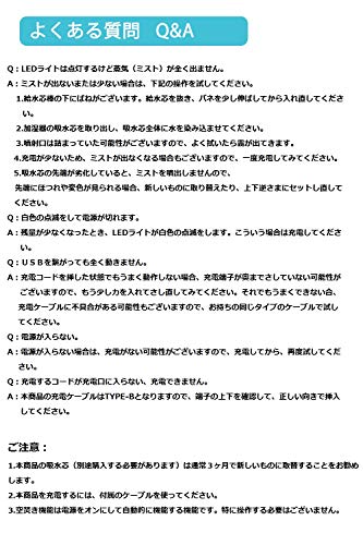 アロマディフューザーの上蓋を外し、電源ケーブルを外して中をきれいに水洗いして乾かします。給水芯の綿棒は別売りになっているので、ミストが出にくい場合は取り換えが必要です。メーカーと販売店の12ヶ月の安心保証もあります。