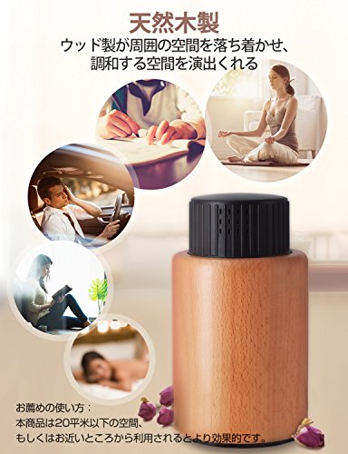 アロマの瓶にアロマオイルを直接入れて内臓フォンで噴霧します。使い方も簡単で出力は3段階に設定ができ、音がとても静かな遮音設計になっています。噴霧口の角度が変えられるようになっています。タイマー機能もあり、細かい時間の設定もできます。在宅ワークにもおすすめで気分転換になります。