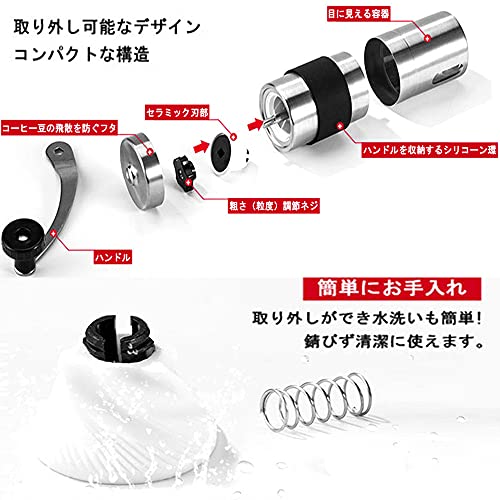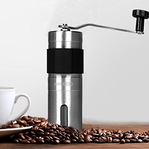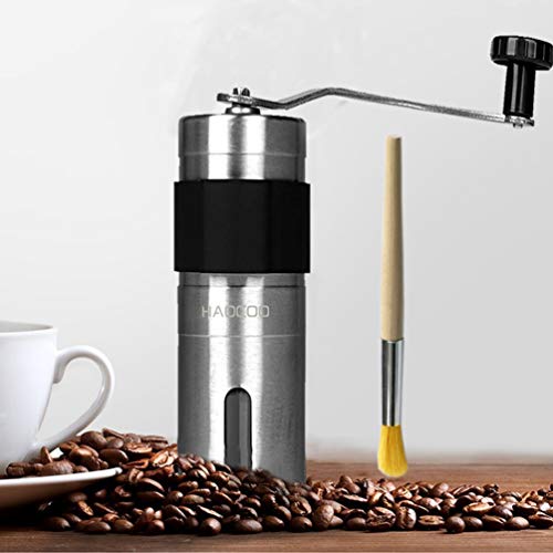 HAOCOO手挽きコーヒーミル セラミックカッター ステンレス コーヒーミル手動ブラシ付き