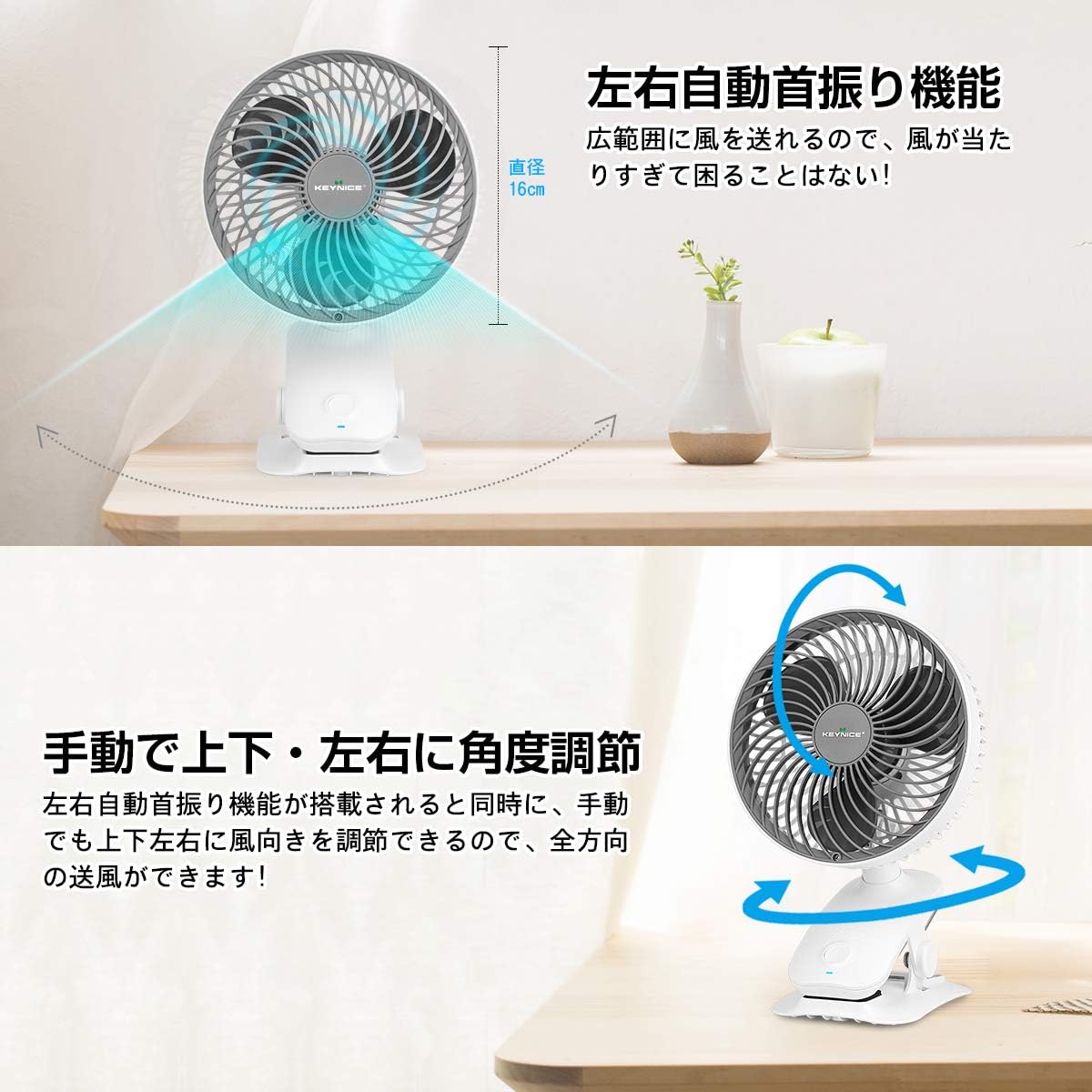 【自動首振り&超静音】KEYNICE 扇風機 小型 充電式 卓上扇風機 usb扇風機 クリップ リズム風搭載 ミニ扇風機 超強風 大容量バッテリー 風量3段階調節 長時間連続使用 ホワイト