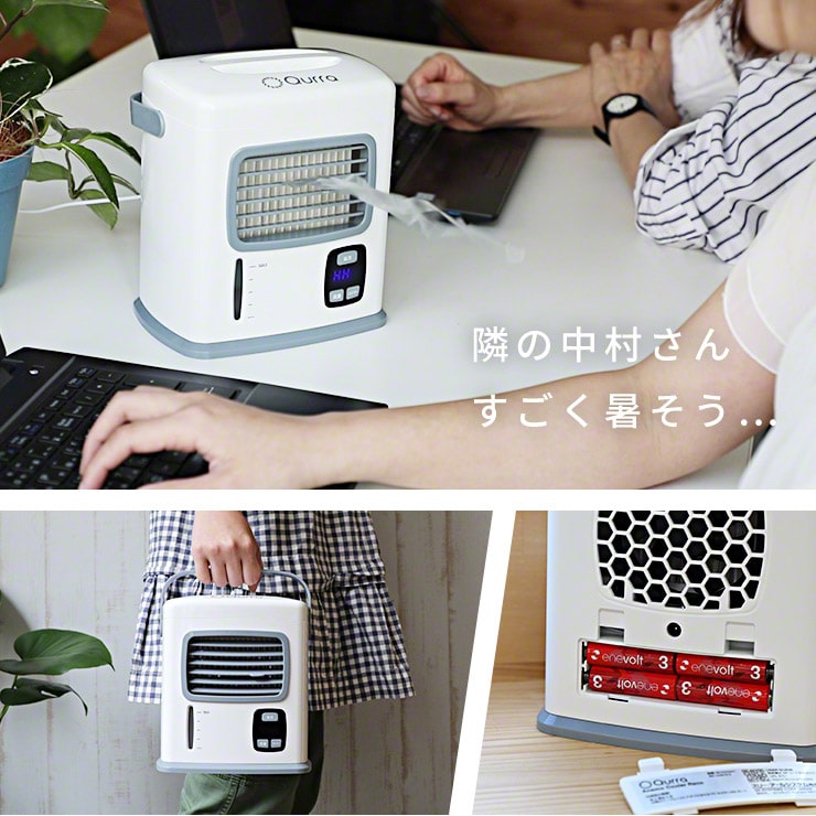 こちらのモバイル冷風機は、持ち運び簡単な軽量&小型仕様で、家庭用として寝室やキッチン周りなどで使える以外にも、オフィスのデスクやキャンプのテント内で、夏の暑さ対策に活用することもできます。