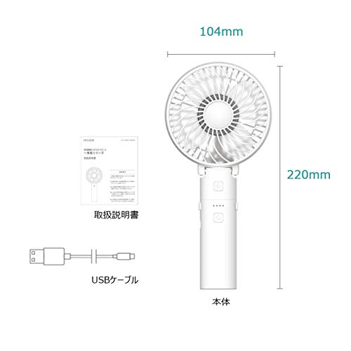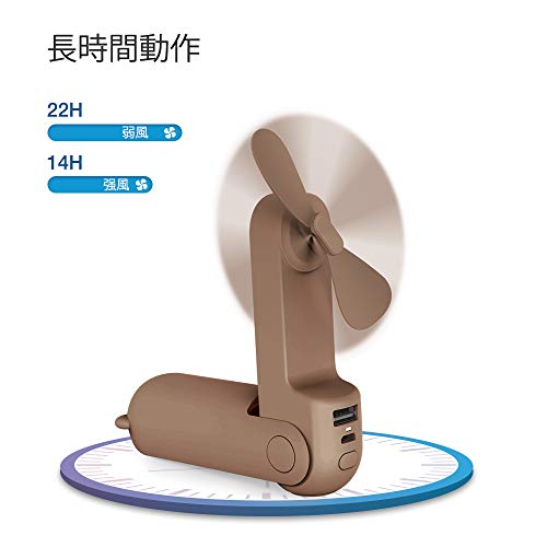 折りたたむとスマートフォンよりも小さいサイズになり、洋服のポケットにも入れられます。フル充電で最大22時間使用できます。安い価格でコスパが高く充電も長持ちします。2枚羽ですが最強にするとパワフルな風量を発生します。LEDライトが付いていて緊急時には懐中電灯として使えてとても便利です。