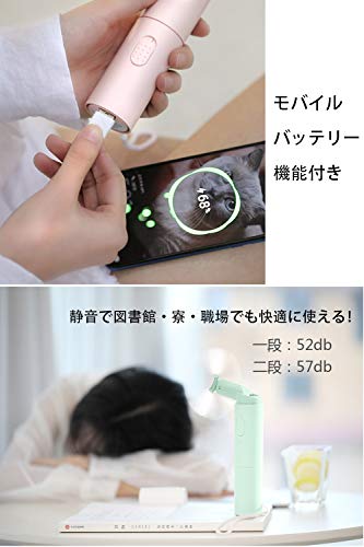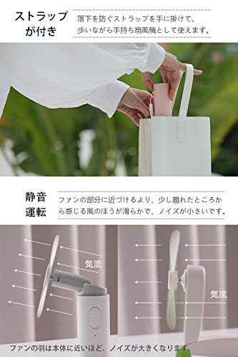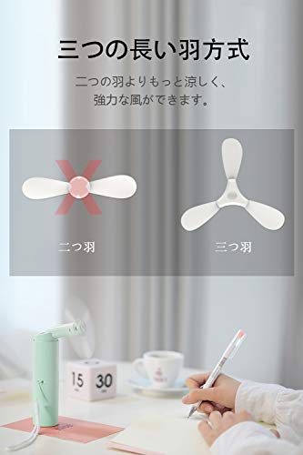 キャップを開けると羽が出てくる設計で、コンパクトですがしっかりとした風力があります。音が静かなので職場や図書館、授業の合間にも使えて便利です。ピンク・ホワイト・グリーンのカラーバリエーションがあり、安い価格でコスパも抜群です。
