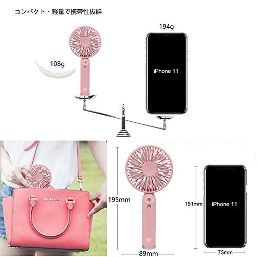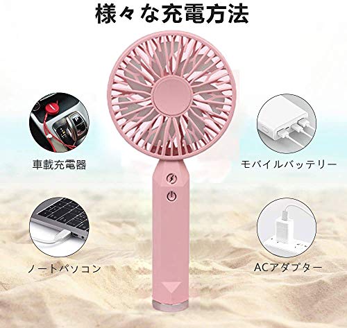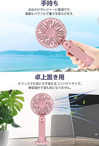 【2020最新】携帯扇風機 手持ち扇風機充電式 USB扇風機 卓上扇風機 小型 最大3~12時間動作 2段階風量調節 スタンド機能 2枚羽根 超静音 USBファン ミニ 小型 熱中症 暑さ充電式 折りたたみスタンド機能(粉色)