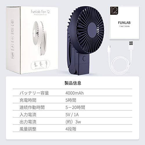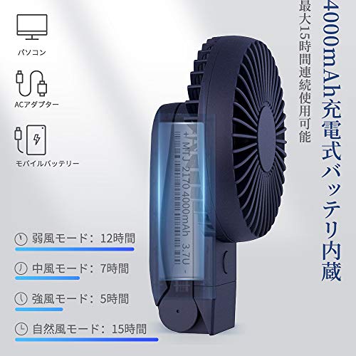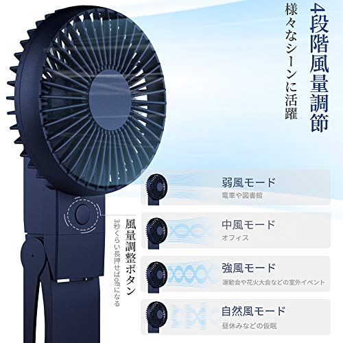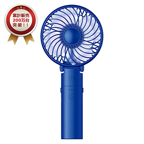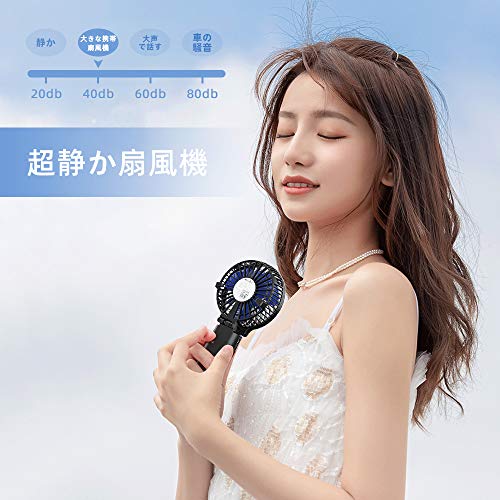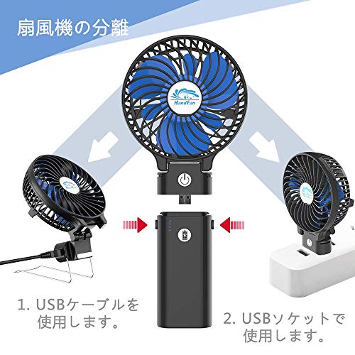 携帯扇風機、HandFan 手持ち/卓上扇風機 折れ變化 最大20時間動作 5200mAhモバイル/大容量電池搭載 小型 USB充電式扇風機 静音 ハンディせんぷうき扇風機 6枚羽根強力 ハンドルの分解はモバイルバッテリーになります PSE認証(ブラック+青)