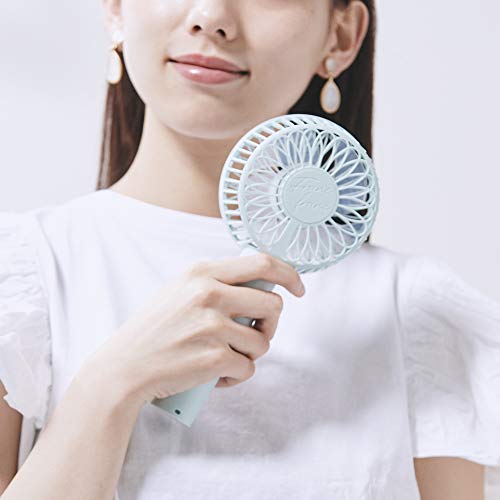 超大容量タイプで最大12時間連続使用ができます。風速は強弱の2段階で静かで自然な風を送ります。軽い手のひらサイズで、洋服のポケットにも収納できいつでも手軽に使用できます。長い柄の設計で卓上扇風機としても安定して使用できます。暑い時期の電車の中や駅でも使いやすいので人気を集めています。