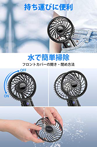 超静音設計のノイズレスなので、静かな職場や在宅ワーク・図書館・仮眠をとる時もおすすめです。4段階の風力調節ができ、風力が強く最強にすると最大5メートルまで到達します。軽いコンパクトな形状で、カバンの中に入れてもかさばらず持ち運びに便利です。本体はワンタッチで取り外して水洗いができ、清潔に使用できます。
