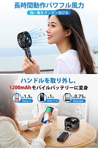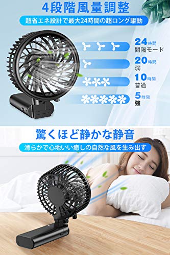 【2020年最新・5200mAh】 Bestore 携帯扇風機 USB充電式 最大24H作動時間 4段風量調節 ハンディファン モバイルバッテリー内蔵 手持ち扇風機 小型 卓上扇風機 持ち運び便利 折りたたみ/スタンド機能 ストラップ付き 旅行/自宅/オフィス用 熱中症対策 (ブラック)