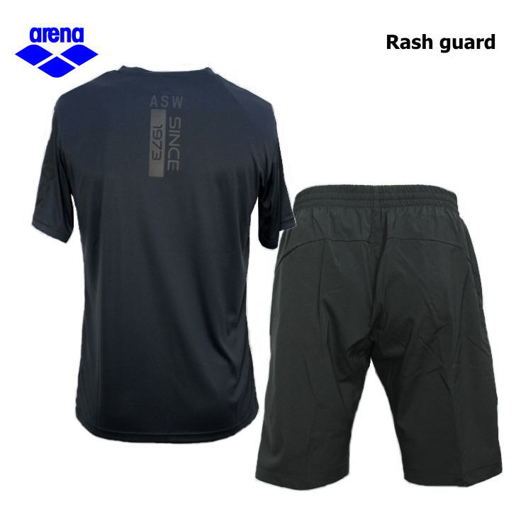ドイツの人気スポーツメーカー「arena(アリーナ)」の半袖ラッシュガードと、膝丈までのショートパンツの上下セットになります。