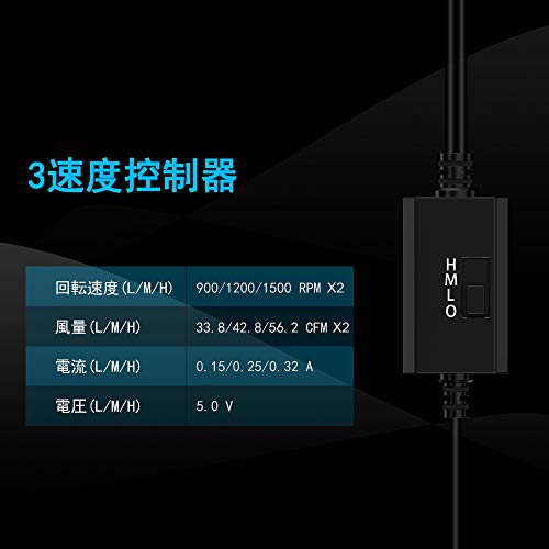 ELUTENG USB ファン 12cm 2連 静音 3段階風量調節 冷却クーラー 小型 USB 扇風機 PC 冷却ファン ボールベアリングモータ採用 5V 長寿命 ダブル 送風機 薄型 120mm 1500RPM× 2 水槽/ルーター/PS4/PS3/PS2/Xbox 対応 クーラー USB FAN 450g