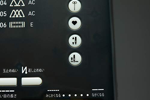 【主な機能】垂直釜、自動針穴糸通し、手元LEDライト、ソフトハンドル、フリーアーム、フットコントローラー操作、自動ボタンホール4ステップ、内蔵ステッチ数17種類、ぬい目の長さ調