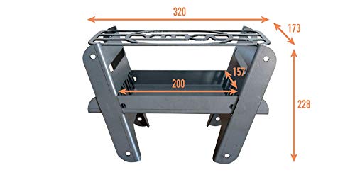 台形を逆さまにしたようなユニークな形状をしている焚き火台です。ロストル部分の大きさは200×157mmとコンパクトなため薪を小割にして入れないといけませんが、鋼鉄できた非常に頑丈な焚き火台となっています。