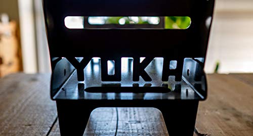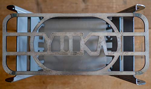 その分重たいですが、構造もシンプルで熱による変形で組み立てしにくくなることは考えにくい焚き火台です。側面には発売元のYOKAのロゴが入るデザインとなっていて他社の焚き火台とは大きく異なります。