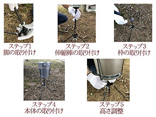 バケツ型という非常に珍しい焚き火台を紹介します。大きさはΦ22×47cmと意外とコンパクトです。収納サイズは23.5×23.5×25cmとかさばるためオートキャンプに向きます。スタンドが伸縮でき単なる焚き火台から松明のようにキャンプサイトを彩るかがり火としても使え、網などを乗せると調理もできます。