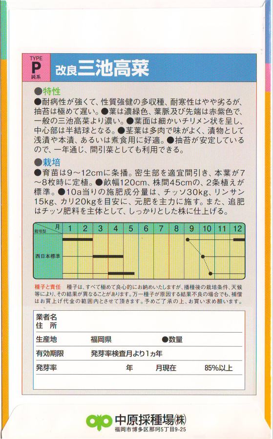 高菜は原産地がアジアで日本へは中国から伝来し、日本各地でいろいろな種類が作付けされて漬物などに加工されその地域の名産品として愛されてきました。山形のおみ漬に使われる山形青菜(せいな)や和歌山県の名物料理めはり寿司の原料に使われる青ちりめん高菜・三池高菜といったものが有名な青菜の品種としてあります。