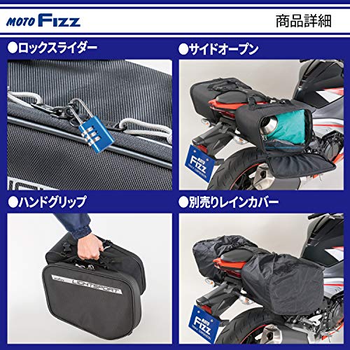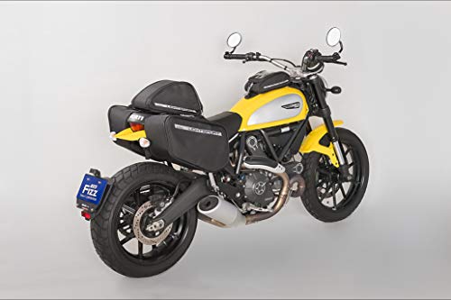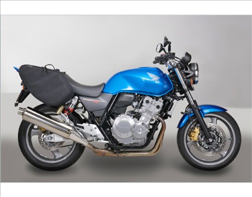 SS車やツアラーなど、スポーティなバイクに似合うデザインです。タンデムシートにバックル付きのベルトを取り付け、バックルと鞍で固定するタイプのサイドバッグ。バイクに合わせた取り付け方法を模索する期間が必要です。
