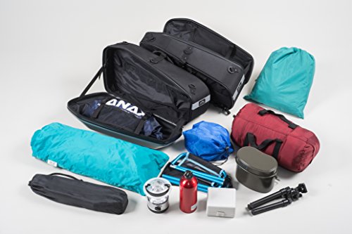 タナックスのスポルトシェルケース(MFK-217/218)の容量は18+18L。合計36Lですので、キャンプツーリングには十分な容量です。容量以上にメリットがあるのはサイドバッグの長さ!内寸の最大長は51cmもありますので、タープ用のポールや釣竿も収納できます。