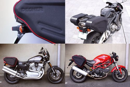 Sporacingrtsの汎用サイドバッグは、ベストセラーの安いサイドバッグです。価格ほどのチープさは感じられず、中型アメリカンユーザーを中心に人気があります。生地は合成皮革ですので、メンテナンス性に期待できます。DIYで加工すれば片側取り付けやタンデムツーリングも可能です。