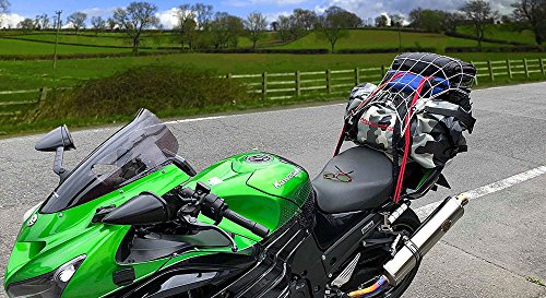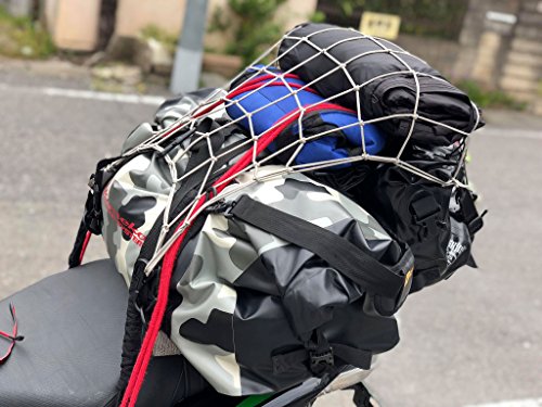 ホームセンターコンテナをバイクに固定するには不向きかもですが、シートバッグをズレないように積載するには最強レベル!ゴムの弾性が強く、走行中の振動で荷物が揺れても緩みませんし、前にズレることもありません。X型にかけてタイダウンするのみという簡単さにも人気があります。