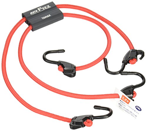 タナックスのキャリングコード1-Vはシンプルなショックコードです。両端のフックをバイクにひっかけ、100cmのゴム製コードで荷物を固定します。付属している3つ目のフックは荷物の大きさに合わせるためのもの。