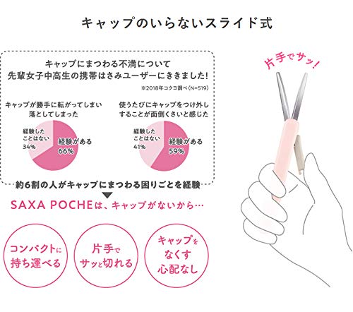 片手でサッと切れる便利な携帯はさみです。コンパクトで場所を取らず、スライド式なのでキャップを失くす心配もありません。ペンケースなどに入れて便利に持ち運びできるのがうれしいです。