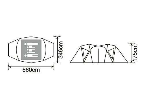 ファミリーキャンプで使いやすい2ルームです。他社のトンネル型では、ルーフシートがオプションになっているケースが多く標準装備は珍しいですよ。設営が簡単なのため設営しやすく、大型メッシュパネルで通気性がよく暑い日も寒い日も使いやすく、耐水圧は1800mm+ルーフシートと大雨でも耐えられるようなっていて、色分けされたポールでさらに設営しやすいなど初心者でも大型テントが使いやすくなる工夫が豊富にあります。