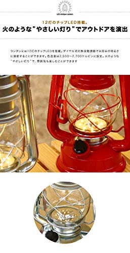 12灯のチップLEDが搭載していて、キャンプの屋外で料理を食べる時にも丁度良い明るさのランタンです。火を使うこともないので、キャンプテント内でも火事の心配なく、安全に使う事が出来ます。