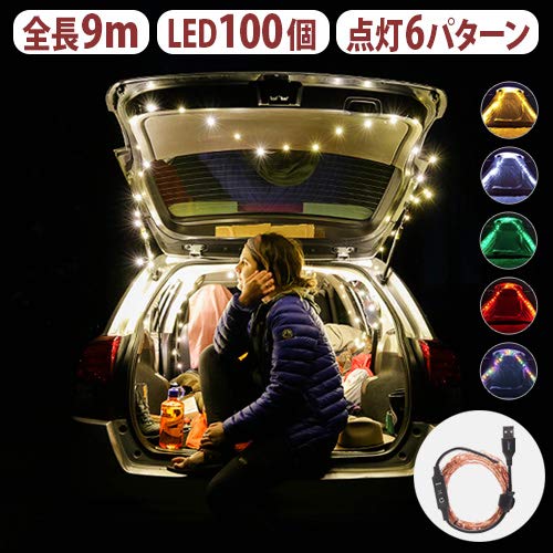 【仕様】使用電球/LED100個、電源/USB電源(5V)、点滅パターン/6種類変更可能、機能/光量8段階調整(最大350ルーメン)、消費電力/1~5W