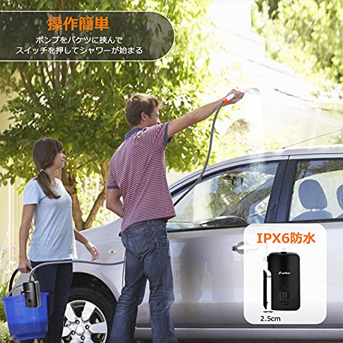 コンパクトで持ち運びやすいポータブルシャワーを探しているという方には、こちらのモデルがおすすめです。バケツなどの水を即座にシャワーに変えてしまう便利なアイテムで、いつでもどこでも利用できます。