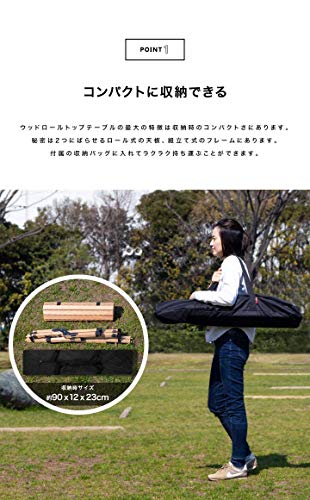 木目が美しいホワイトアッシュ材を素材に採用している木製テーブルで、天板をくるくると丸める事ができ、フレームは折りたたみ仕様で、かつ収納用のインナーケースや、専用ケースにコンパクトに収納できるので、持ち運びもしやすいです。アウトドアだけでなく、部屋の中でも使いやすいシンプルなデザインです。カラーは2種類ありますので、お好みの方から選ぶことができます。