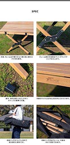 FIELDOOR ウッドロールトップテーブル 幅90×奥行き60×高さ45cm 天然木 コンパクト 収納 簡単組立 収納バッグ付 ローテーブル インテリア キャンプ アウトドア