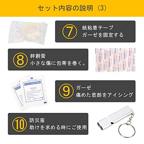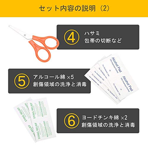 ポイズンリムーバーがありますので、万が一毒を持つ生き物に噛まれても怪我と同じように応急処置ができます。キットの袋は防水性もありますので車内から外に出るときにも鞄に忍ばせておきましょう。