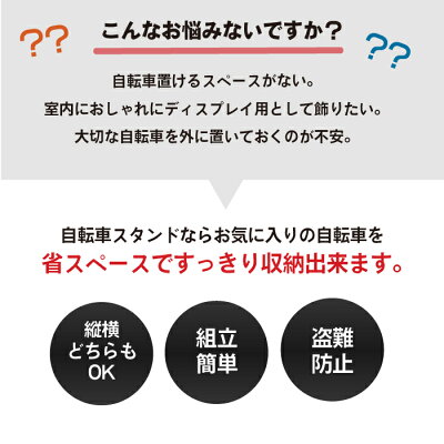 省スペース縦置きスタンドは、ラックのように自転車を床につけない置き方ができ、そのうえ値段は抑えられてるので、通常の床置きスタンドと省スペースラックの良さを兼ね備えた印象です。また見た目に関しては、店頭のディスプレイのような置き方ができると高評価です。