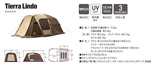 【素材】フライ/75Dポリエステルタフタ(UVPRO、PU防水、シームシール)、インナー/68Dポリエステルタフタ(撥水加工)、フロア/210Dポリエステルオックスフォード(PU防水、シームシール)
