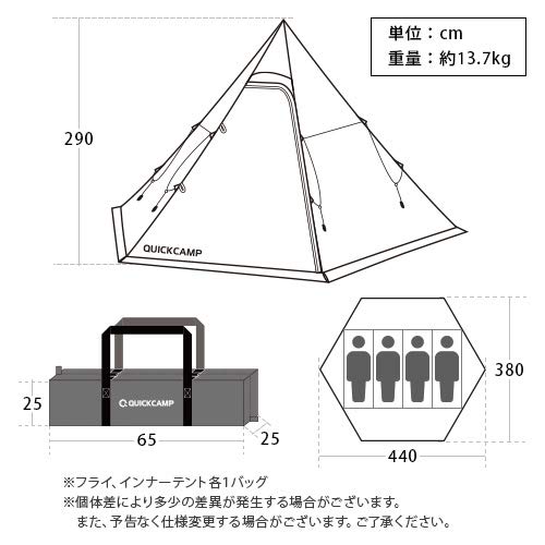 【サイズ】使用時/幅440cm×奥行380cm×高さ290cm、収納時/幅65×奥行25cm×高さ25cm